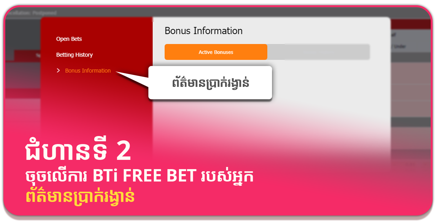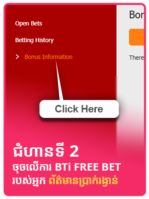7. សំរាប់ប្រាក់ Free bet USD 50 តម្រូវអោយធ្វើការភ្នាល់វិលជុំចំនួន 1 ដងនៅក្នុង BTi Sports ជាមុនសិនមុនពេលដកប្រាក់ ឬទាមទារប្រាក់រង្វាន់ផ្សេងទៀត។
